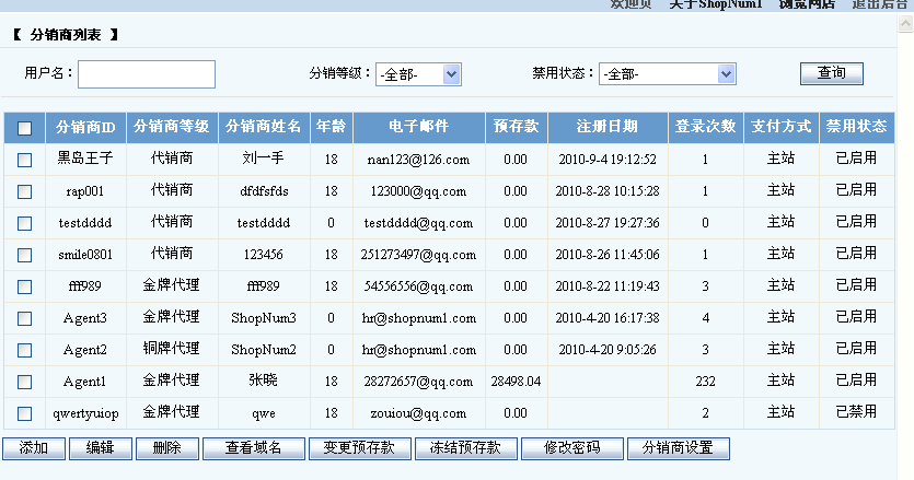 3. 在分銷商列表上選中你要設(shè)置的分銷商,然后點(diǎn)擊右下角按鈕分銷商設(shè)置(例如選中Agent1那一列),所跳轉(zhuǎn)分銷商設(shè)置頁(yè)面如下: