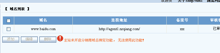 原因:主站沒有給分站授權(quán)綁定域名的功能。