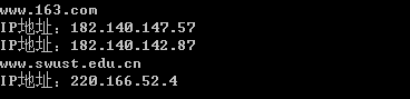 1、編寫程序能同時實現(xiàn)對多個域名的解析。比如在控制臺輸入:getip www.163.com www.swust.edu.cn , 能輸出www.163.com 和 www.swust.edu.cn 對應(yīng)的IP 地址列表。