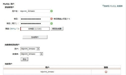 第二步:創(chuàng)立數(shù)據(jù)庫和用戶名,數(shù)據(jù)庫需求本人手動在空間后臺創(chuàng)立,創(chuàng)立一個數(shù)據(jù)庫,還創(chuàng)立一個數(shù)據(jù)庫用戶名,最終給予權(quán)限。