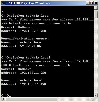 需要確認(rèn)客戶(hù)端IP 地址的DNS 指向是本地DNS 服務(wù)器,在命令提示符狀態(tài)下運(yùn)行: