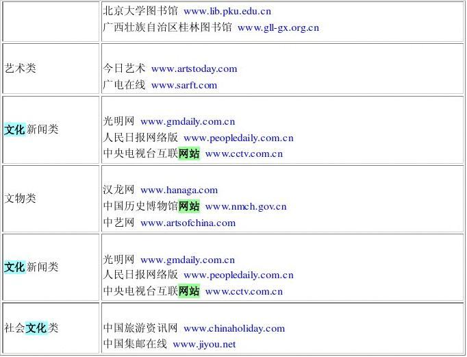 “廣西壯族自治區(qū)桂林圖書(shū)館”(http: // www. gll-gx. org. cn)中的“地方資料數(shù)據(jù)庫(kù)”、“桂林地方資源圖文數(shù)據(jù)庫(kù)”和“旅游論文數(shù)據(jù)庫(kù)”等,都很具權(quán)威性。另外,它的“全國(guó)新藥”和“全國(guó)注冊(cè)商標(biāo)”數(shù)據(jù)庫(kù),瀏覽板塊中的“桂林畫(huà)廊”等,都獨(dú)具特色。豐富的外鏈也是它的一個(gè)重要特色,僅國(guó)外圖書(shū)館一項(xiàng)就有近200個(gè)世界著名圖書(shū)館的超級(jí)鏈接。 另如 “今日藝術(shù)”(http: // www. artstoday. com)中陳列的中國(guó)優(yōu)秀畫(huà)家的繪畫(huà)作品,收集世界各大演出場(chǎng)所的精彩藝術(shù)演出進(jìn)行網(wǎng)上直播的“網(wǎng)上音樂(lè)會(huì)”;“人民網(wǎng)”中薈萃50年《人民日?qǐng)?bào)》的數(shù)千萬(wàn)字的資料庫(kù);“北京大學(xué)圖書(shū)館”的“數(shù)字圖書(shū)館”所藏的古籍拓片和學(xué)術(shù)講座視屏點(diǎn)播;等等,都是特色鮮明的網(wǎng)絡(luò)文化內(nèi)容精品。