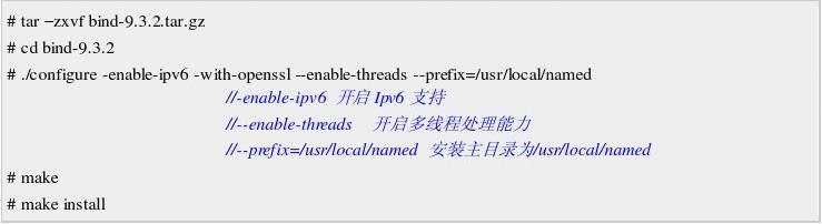 下載bind-9.3.2.tar.gz 后,進(jìn)入存放安裝文件的目錄,執(zhí)行以下命令。