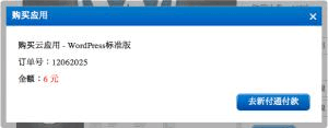 支付完成后會回到云商店的成功提示頁面,點擊上邊的“安裝應(yīng)用”,稍等片刻,購買的應(yīng)用就可以使用了。初始化WordPress