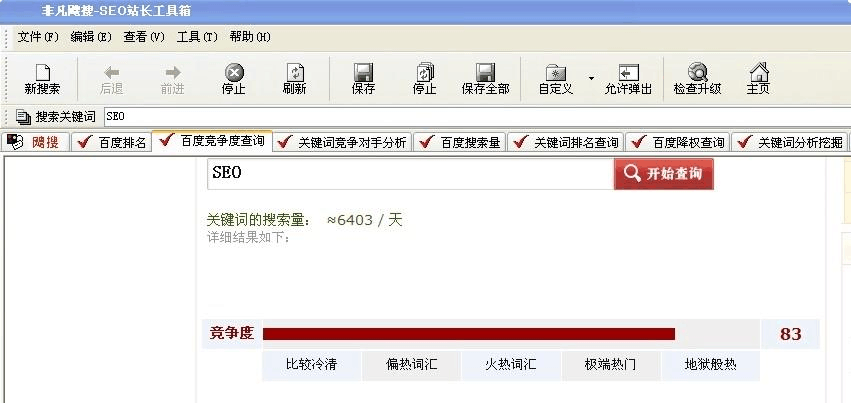 競(jìng)爭(zhēng)度是可以衡量這個(gè)關(guān)鍵詞做到百度首頁(yè), 你大概需要多少的精力, 也能評(píng)估一下對(duì)手的實(shí)力. 一般越多高權(quán)重的網(wǎng)站、外鏈多的頁(yè)面在競(jìng)爭(zhēng)這個(gè)關(guān)鍵詞,則該詞的競(jìng)爭(zhēng)越激烈,熱度越高。將排在搜索引擎前50名的頁(yè)面進(jìn)行分析,將50個(gè)頁(yè)面的域名權(quán)重、頁(yè)面權(quán)重等按一定的公式進(jìn)行計(jì)算,然后用這個(gè)結(jié)果來(lái)體現(xiàn)競(jìng)爭(zhēng)的激烈程度。