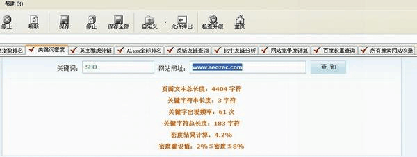 這里關(guān)鍵詞是指有一定的百度指數(shù), 篩選出你所關(guān)注或者想優(yōu)化的關(guān)鍵詞, 冷門(mén)的關(guān)鍵詞就不需要費(fèi)太大的周折了. 密度在2-5之間就完全有可能做上去.