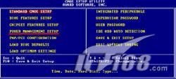 接下來進入CMOS 設(shè)置,選擇劃紅線處電源管理一項(不同的BIOS 版本可能位置不一樣),敲回車鍵進入,如圖1。