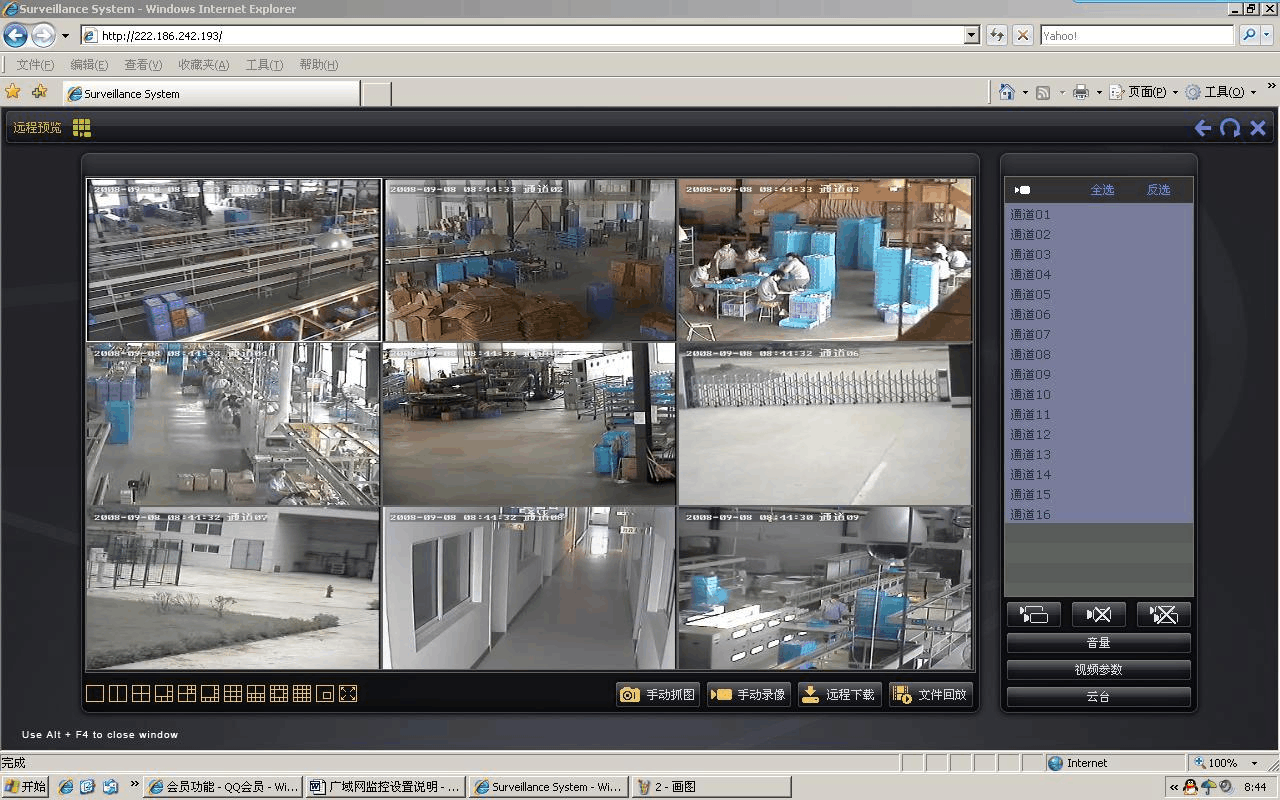 件,提示安裝成功后進(jìn)入軟件界面,選取相應(yīng)的畫面分割后連接相應(yīng)通道即可。