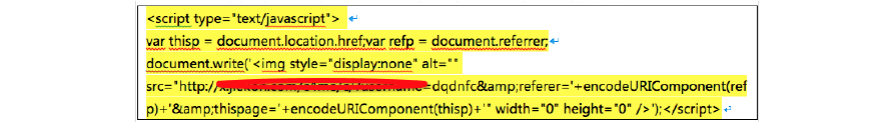 ,判罰案例四:推廣賬戶(hù)下多個(gè)站點(diǎn)存在竊取訪客行為,未清理完全 判罰推廣用戶(hù)表示已清理完訪客記錄平臺(tái)的代碼,但仍然被判黑 經(jīng)過(guò)我們檢查,發(fā)現(xiàn)判罰的用戶(hù)僅清理了www 域下的惡意代碼,而他賬戶(hù)下還推廣了其它站點(diǎn)下的url ,源碼中存在這樣一段代碼:
