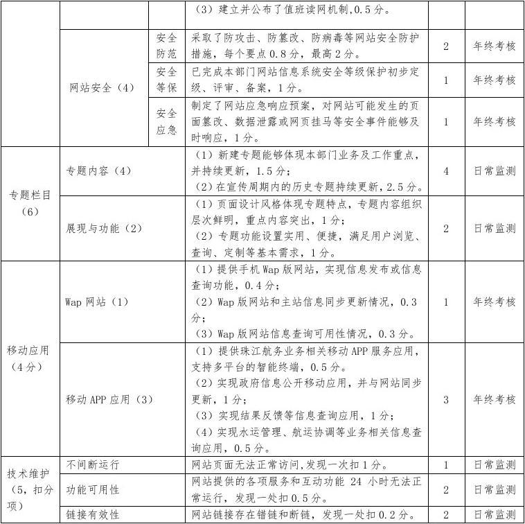 表四:交通運(yùn)輸部珠江航務(wù)管理局政府網(wǎng)站評(píng)估指標(biāo)體系(一)基本指標(biāo)(100分) , , ,