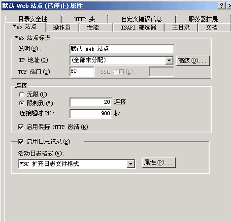 下面再單擊"Web 站點(diǎn)" 標(biāo)簽,然后在該標(biāo)簽頁(yè)面中,將" 啟用日志記錄" 復(fù)選項(xiàng)取消掉,這樣IIS 服務(wù)器就不需要耗費(fèi)另外的資源,來(lái)自動(dòng)記憶每一個(gè)訪問(wèn)連接的日志文件,這么一來(lái)IIS 服務(wù)器處理信息的效率又會(huì)得到進(jìn)一步提升;當(dāng)然,將"Web 站點(diǎn)" 標(biāo)簽頁(yè)面中的" 啟用保持HTTP 激活" 選項(xiàng)選中,也可以在一定程度下,提高IIS 服務(wù)器的處理效率;
