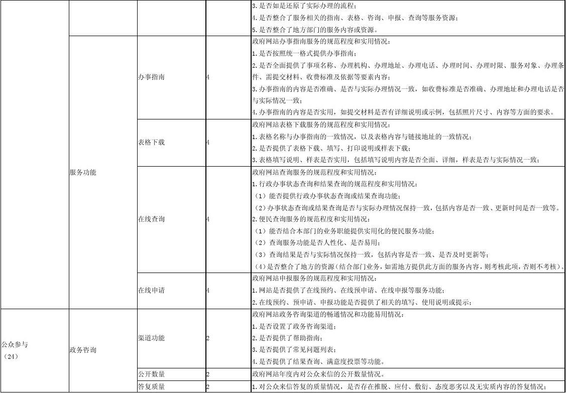 第二節(jié)部委網(wǎng)站評(píng)估指標(biāo)《2012年部委網(wǎng)站績(jī)效評(píng)估指標(biāo)體系》重點(diǎn)細(xì)化了信息公開、在線辦事、公眾參與等方面的評(píng)估要點(diǎn);為進(jìn)一步創(chuàng)建更加透明的政務(wù)環(huán)境,加大政策解讀和輿論引導(dǎo)能力,新增“政策引導(dǎo)”指標(biāo);此