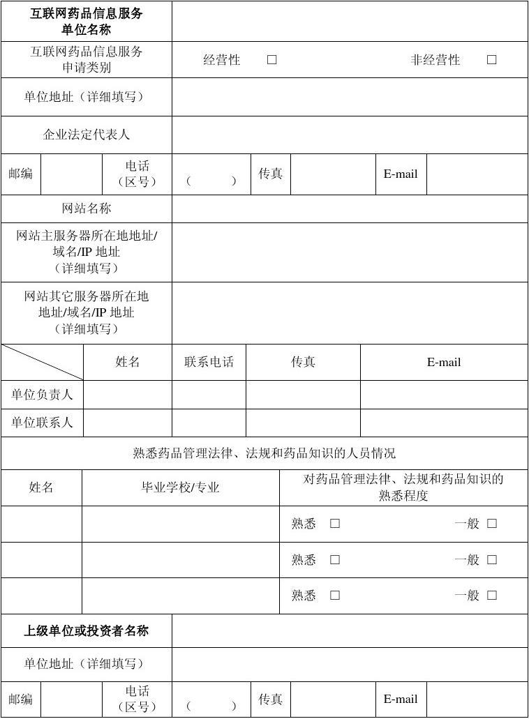 互聯(lián)網(wǎng)藥品信息服務(wù)申請(qǐng)表