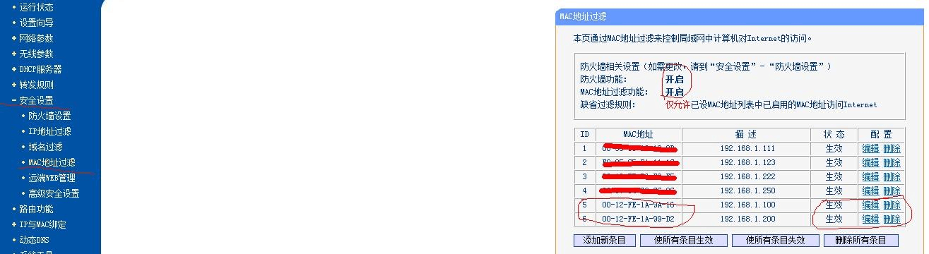 4)無線網(wǎng)絡的MAC 地址過濾(不在表中的MAC 地址將不能訪問你的無線網(wǎng)絡)