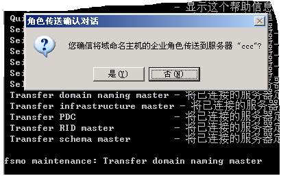 Transfer RID master - 將已連接的服務器定為 RID 主機 Transfer schema master - 將已連接的服務器定為架構(gòu)