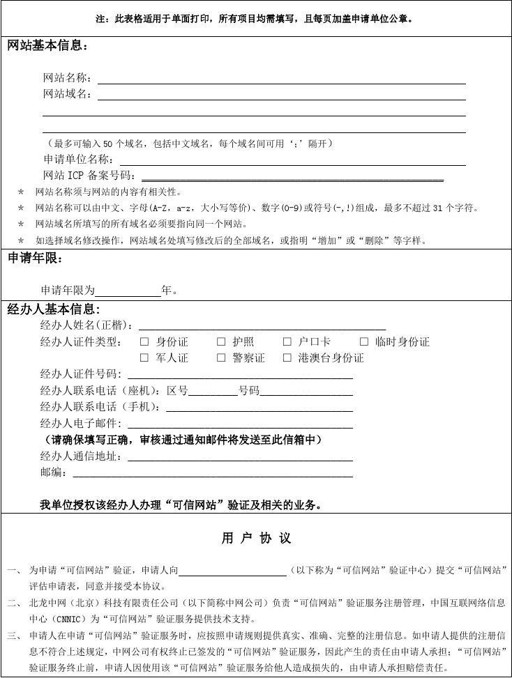 “可信網(wǎng)站”驗(yàn)證申請表 ,