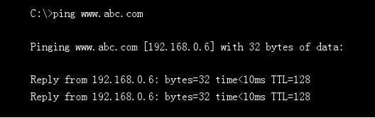 (3)建立域名“www.abc.com ”映射到IP 地址“192.168.0.6”的主機(jī)記錄。