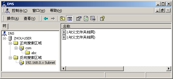 至此,DNS 正向搜索區(qū)域及使用靜態(tài)IP 地址的主機(jī)記錄建立完畢,DNS Server能把該區(qū)域中的主機(jī)域名解析成相應(yīng)的IP 地址。