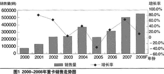 從2000年到現(xiàn)在,重卡市場(chǎng)一直都處于一個(gè)高速增長(zhǎng)的態(tài)勢(shì),但是花無百日紅。重卡可以說是國(guó)民經(jīng)濟(jì)的晴雨表。高速增長(zhǎng)的重卡市場(chǎng)遇到暫時(shí)性的振蕩,并不違背市場(chǎng)規(guī)律。2004年由于國(guó)家治理超載、超限,短期之內(nèi)造成重卡一時(shí)洛陽紙貴,應(yīng)者云集,目前至少有5萬輛的虛增量。2005年人民幣升值等因素造成中國(guó)出口較2004年有所放緩,直接影響到物流運(yùn)輸業(yè)。