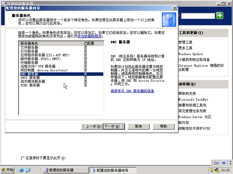 ,單擊“下一步“安裝DNS 服務(wù)器,如圖: