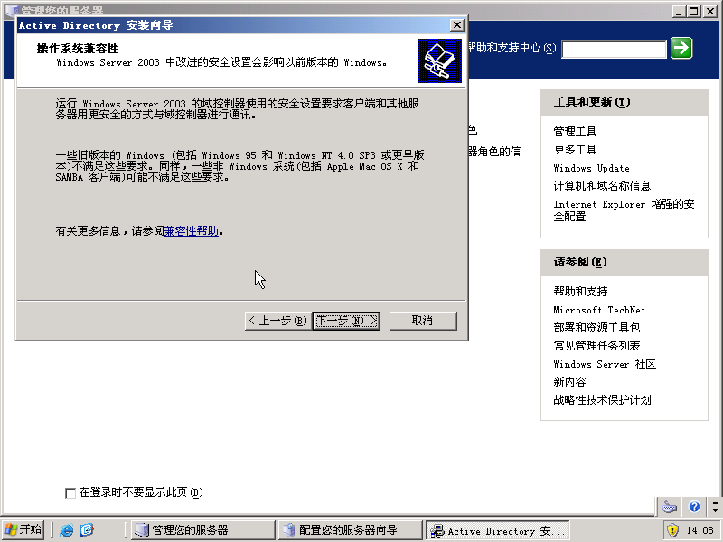 1.Windows Server 2003中的活動(dòng)目錄創(chuàng)建。