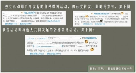 微博活動(dòng)一般分為新浪平臺(tái)活動(dòng)與企業(yè)獨(dú)立活動(dòng)