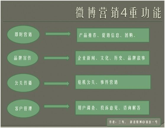 ■ 微博也需要推廣,它猶如企業(yè)官方網(wǎng)站一樣,需要通過多種渠道來進(jìn)行宣傳推廣,我們總結(jié)一樣,將其歸結(jié)為站內(nèi)推廣和外部推廣,具體如下: