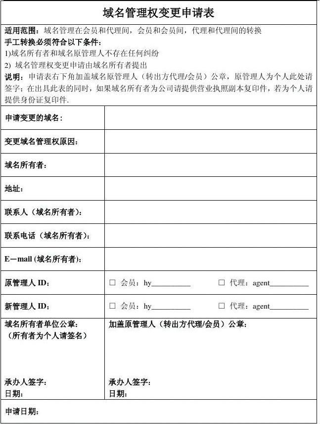 新網(wǎng)域名管理權(quán)變更申請(qǐng)表