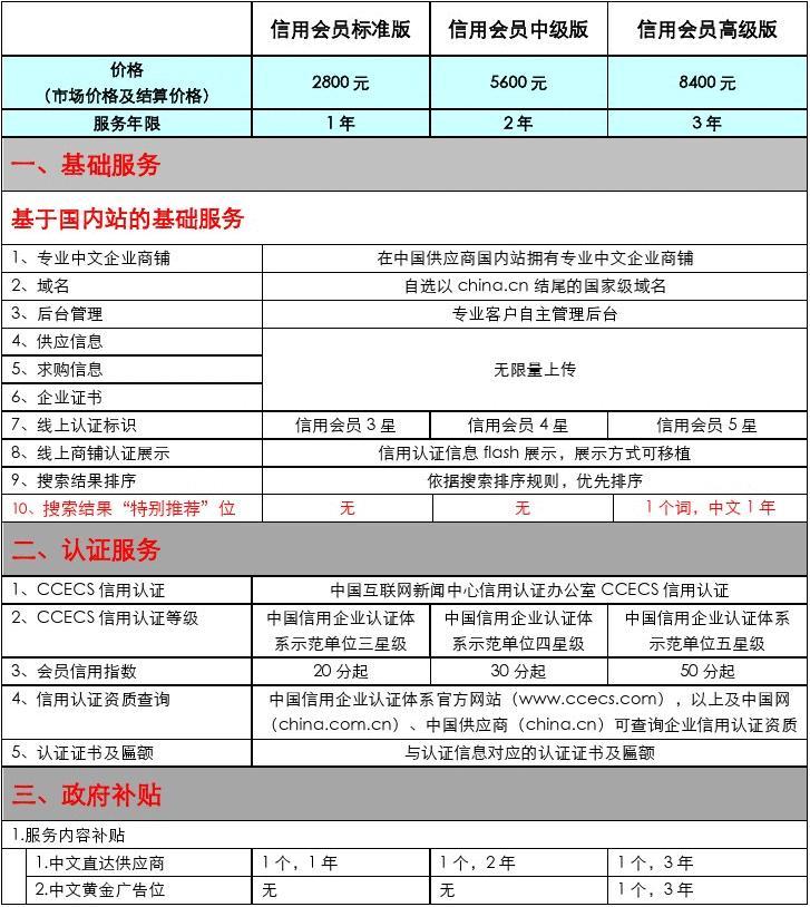 表1:中國供應(yīng)商信用會員產(chǎn)品服務(wù)說明