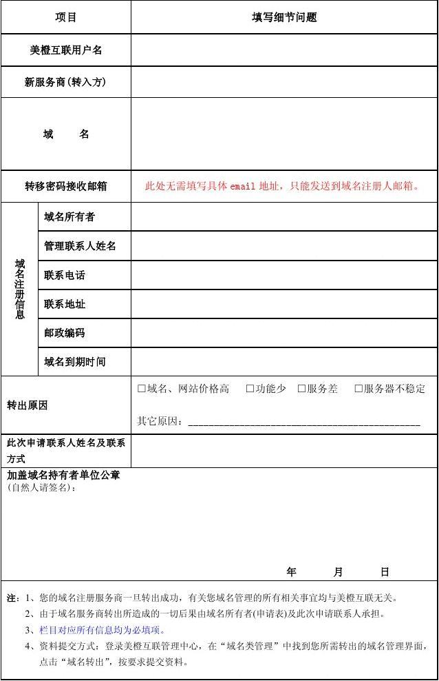 域名注冊商轉(zhuǎn)出申請表