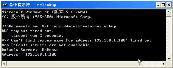 (2) 打開(kāi)命令行工具,在運(yùn)行下輸入CMD ,然后輸入nslookup 命令測(cè)試服務(wù)器。