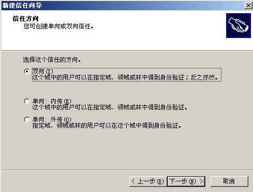 第四步:選擇你需要建立的信任的方向性,這里可以選擇“雙向”。按“下一步”。