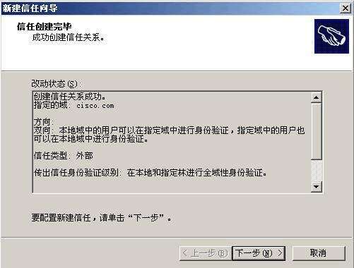 第八步:系統(tǒng)提示成功創(chuàng)建信任關系,按下一步。