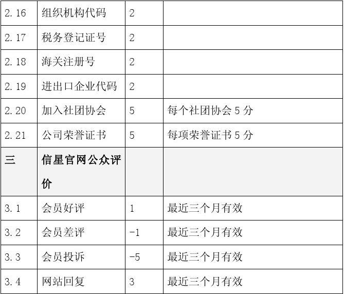 單個網(wǎng)站信星積分標(biāo)準(zhǔn)對照表: