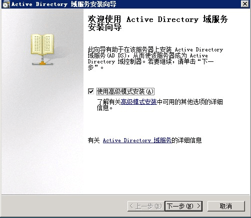 然后單擊下一步,進(jìn)入一個(gè)對(duì)AD 的簡介界面,