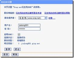 登錄路由器,TP-Link 支持花生殼的解析,輸入申請(qǐng)的賬號(hào)。連接,連接成功后下邊會(huì)顯示你的域名,保存退出。