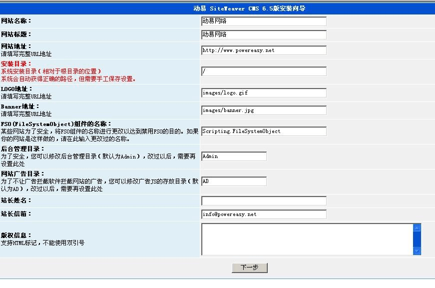 填寫(xiě)相關(guān)信息,如網(wǎng)站標(biāo)題,名稱等。注意網(wǎng)站地址必須正確填寫(xiě)。 安裝