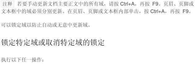 ? 若要取消域的鎖定,以便可以更新域結(jié)果,請單擊域,再按 Ctrl Shift F11。 ?