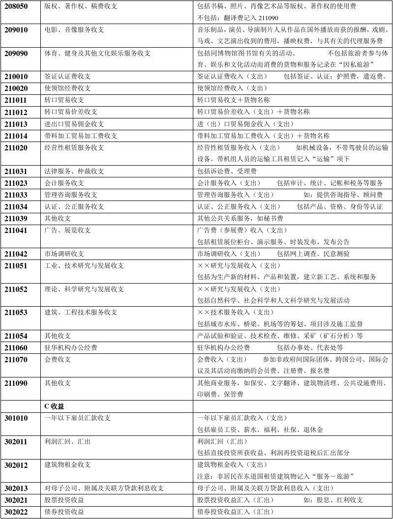 旅游企業(yè)團(tuán)費(fèi)收入/支出?????????????????????????????????202010 公務(wù)及商務(wù)差旅收入/支出????????????????????????????????202020 因私旅游收入/支出???????????????????????????????????202030 醫(yī)療、保健收入/支出??????????????????????????????????202040 教育、培訓(xùn)收入/支出??????????????????????????????????202050 203通信服務(wù)