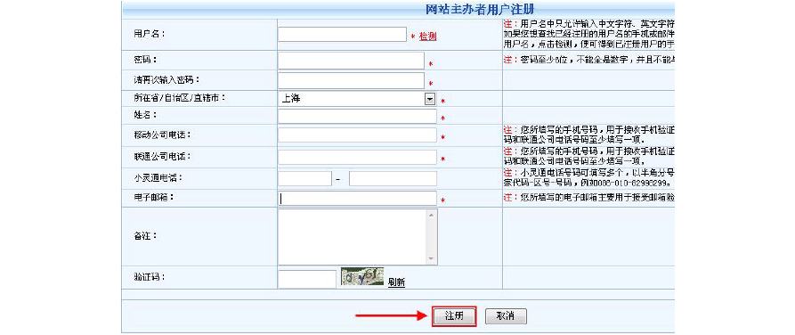 然后開始填寫注冊信息,見下圖。(注意:請如實(shí)填寫您的信息)
