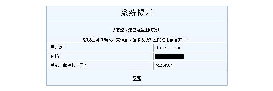 填寫好信息后,點(diǎn)擊注冊按鈕,完成注冊,下圖是提示注冊成功頁面。