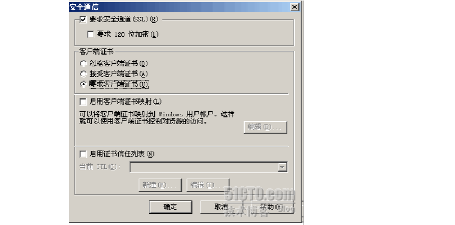 5) :指定在第3步中獲得的CER 文件? 完成向?qū)?。在目錄安全性中點擊“編輯”按鈕設(shè)置客戶端證書訪問配置,如下圖