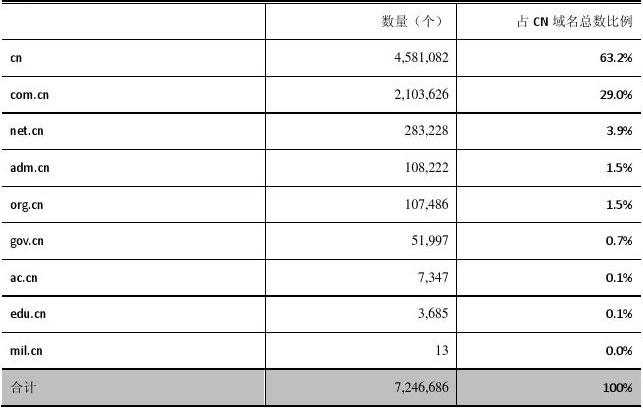 目前CN 域名中,.CN 結(jié)尾的二級(jí)域名比例仍然最高,占到CN 域名總數(shù)的63.2,其次是.COM.CN 域名,為29。