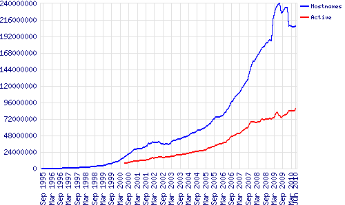 在2010年6月的調(diào)查中,Netcraft 在偵測(cè)時(shí)收到了206,956,723個(gè)站點(diǎn)的反饋信息。如圖1所示: