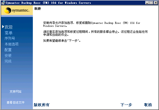 點擊安裝下的啟動Backup Exec for Windws Server環(huán)境檢查,彈出Backup Exec環(huán)境檢查的歡迎界面