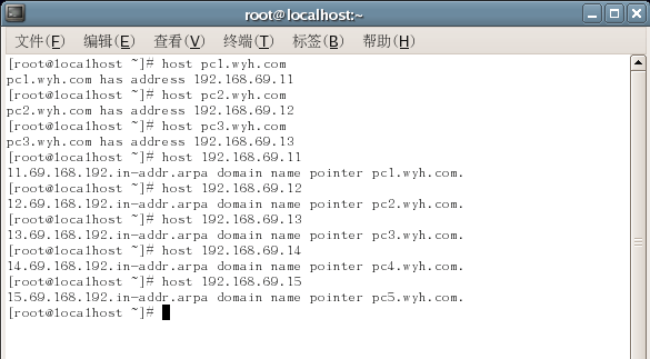 8、輸入以下命令進行正向解析和反向解析的測試,結果如圖所示: