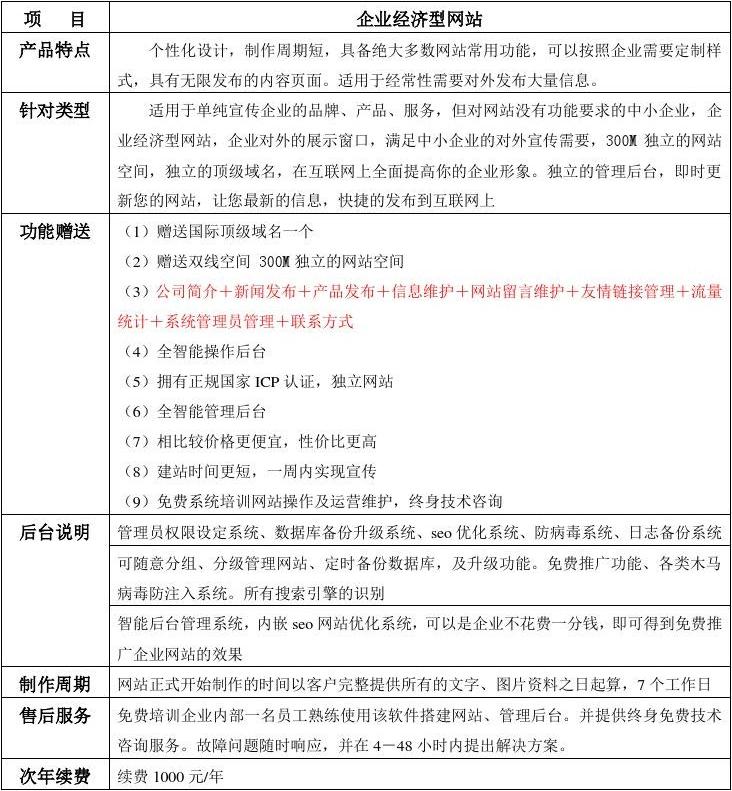 企業(yè)經濟性網站,企業(yè)對外的展示窗口,滿足中小企業(yè)的對外宣傳需要,300M 獨立的網站空間,獨立的國際頂級域名。在互聯網上提高你的企業(yè)形象。讓你的客戶第一時間了解您。