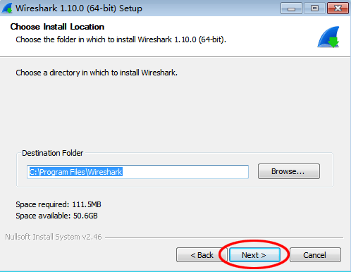 f. 您可以更改 Wireshark 安裝位置,但除非磁盤空間有限,否則我們建議您保留默認位置。