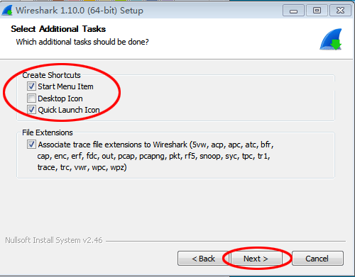 b. 如果是首次安裝 Wireshark ,或者已完成卸載過程,則您將會導航至 Wireshark 設(shè)置向?qū)А螕鬘ext (下一步)。