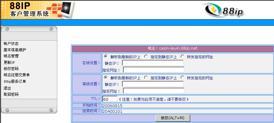 現(xiàn)在已經(jīng)通過88IP 系統(tǒng)進(jìn)行動(dòng)態(tài)域名解析了。如下圖: